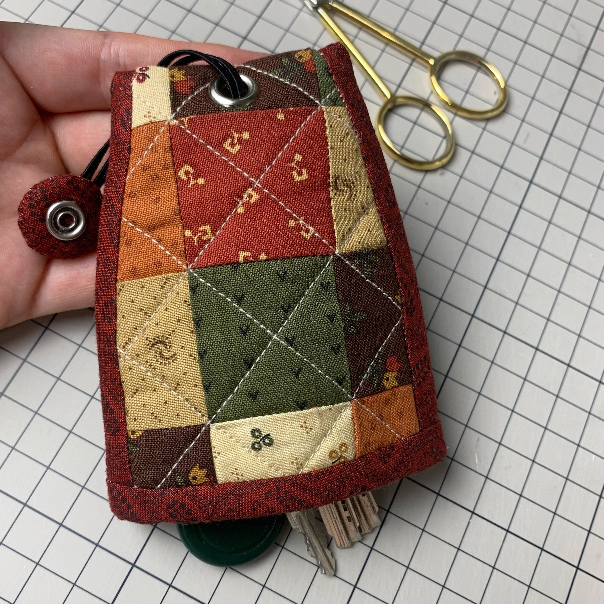 Мастер-класс лоскутной ключницы в формате pdf с супер подробными фотографиями по каждому шагу пошива. А также есть ссылки на всю фурнитуру, которая использовалась при пошиве.