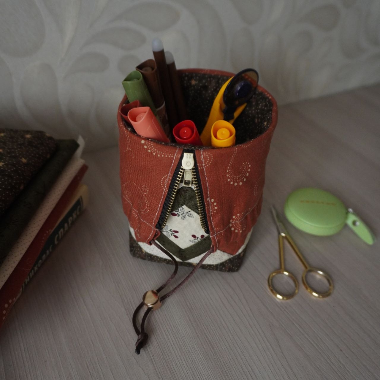 Мастер-класс с подробными пошаговыми фотографиями по пошиву пенала-органайзера в формате pdf.